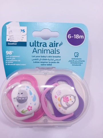 Avent Ultra Air Animal Silicone Soother/Pacifier 6-18m (Twin Pack)-Decorated Girl