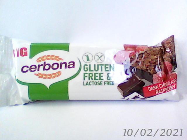 Cerbona Dark Chocolate Raspberry G/F L/F Muesli Bar 35g